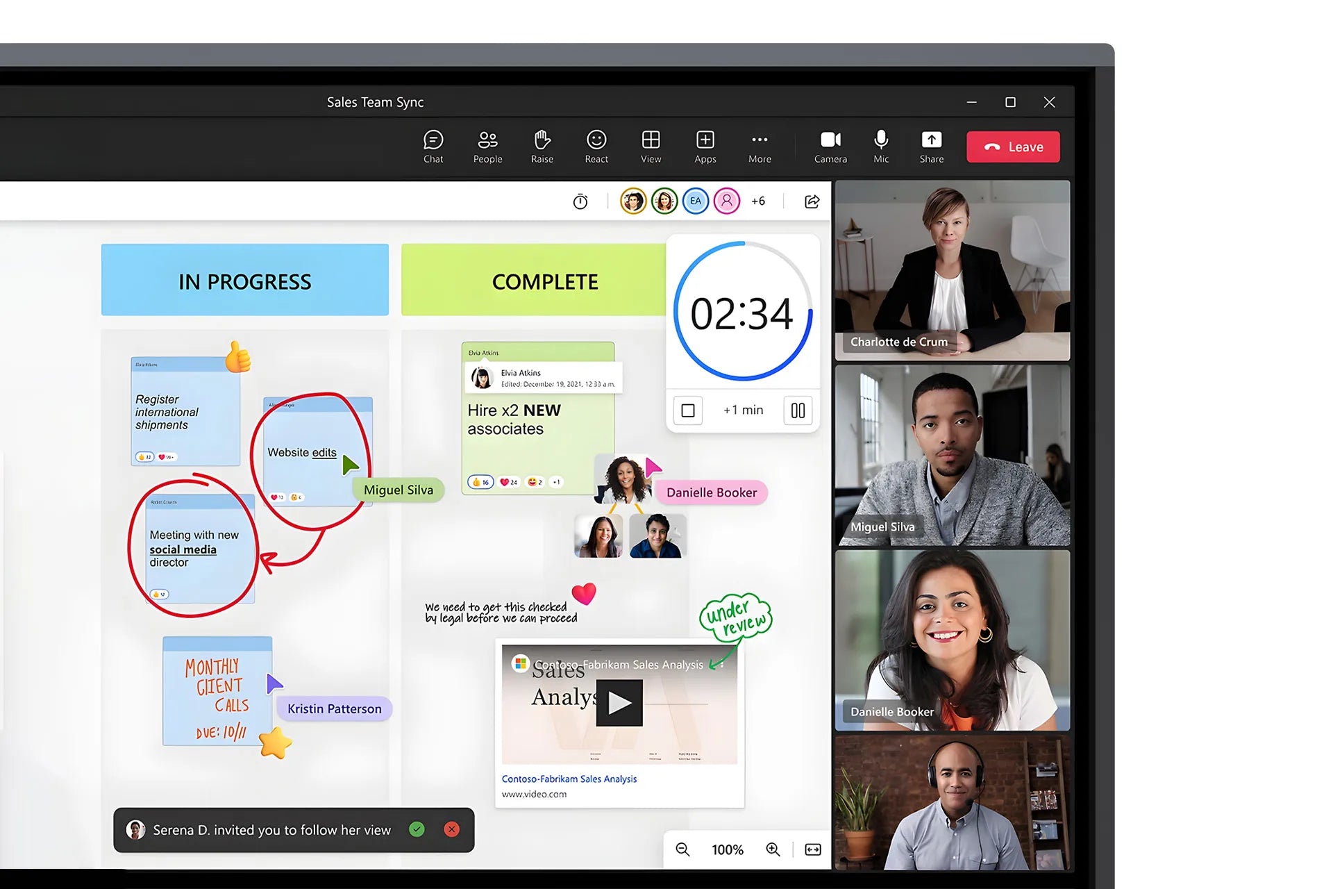 On a business trip or at home, no matter where you are, you can collaborate and come up with insights anytime and anywhere. Screen sharing, file transfer and processing, connecting with customers, and more.